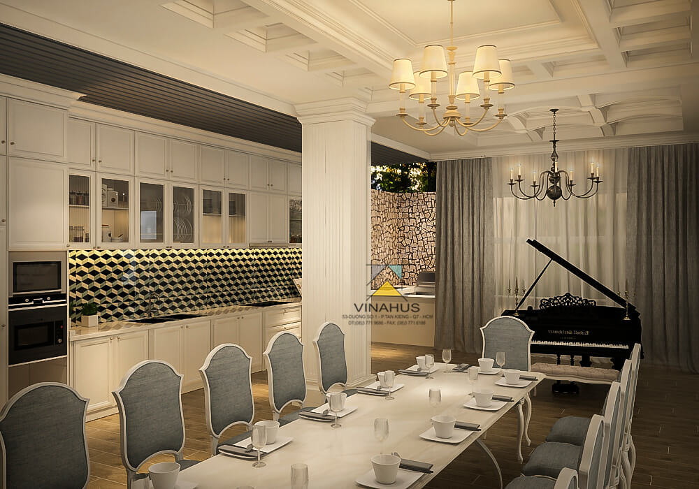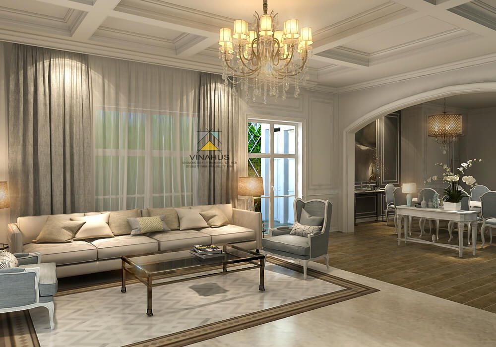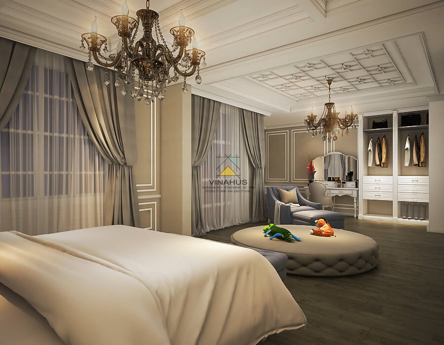 Căn biệt thự với phong cách tân cổ điển, một sự kết hợp mới mẻ giữa những đường nét sang trọng cổ điển nhưng vẫn rất tân thời với tiện nghi sống hiện đại phù hợp với lối sống hiện đại và đẳng cấp của gia chủ